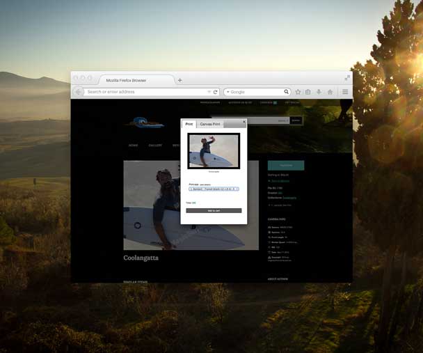 Magic Surf Moments. E-commerce photography website. Large photographic files were the biggest hurdle for this website. I have managed to store them on Google Drive for now and only smaller thumbnails were kept on the server. I also had to commission a developer to create a custom order page, when the user clicked on a print to buy, they were to be presented with options on the way they wanted it printed. Also, a band of photographers can upload their photos after they had taken them. Quite a large project for me. It was all done in a month I believe.